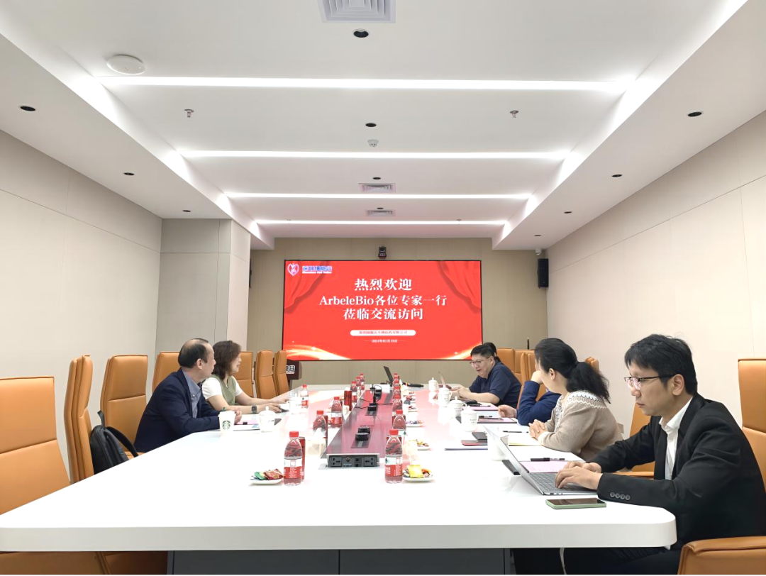 3月19日,ArbeleBio中国区首席运营官Teresa与研发负责人Tony Wong莅临深圳evo真人视讯进行研讨访问。我司董事长史渊源教授、首席科学家王建勋教授、首席顾问Dr.David Jin、副总经理唐晓萌、研发部部长赵丽君及市场部负责人杨江龙热情接待。