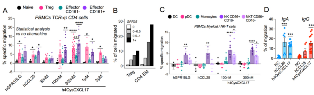 图4. 血液淋巴细胞对CXCL17的趋化作用验证