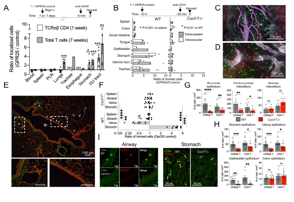 图6. 体内实验验证GPR25-CXCL17轴介导的淋巴细胞