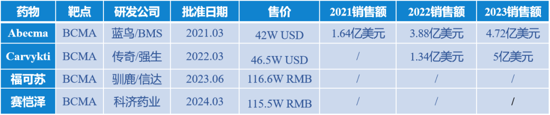 图6:已经上市的4款靶向BCMA的CAR-T产品