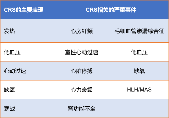图3:CRS的主要表现与CRS相关的严重事件